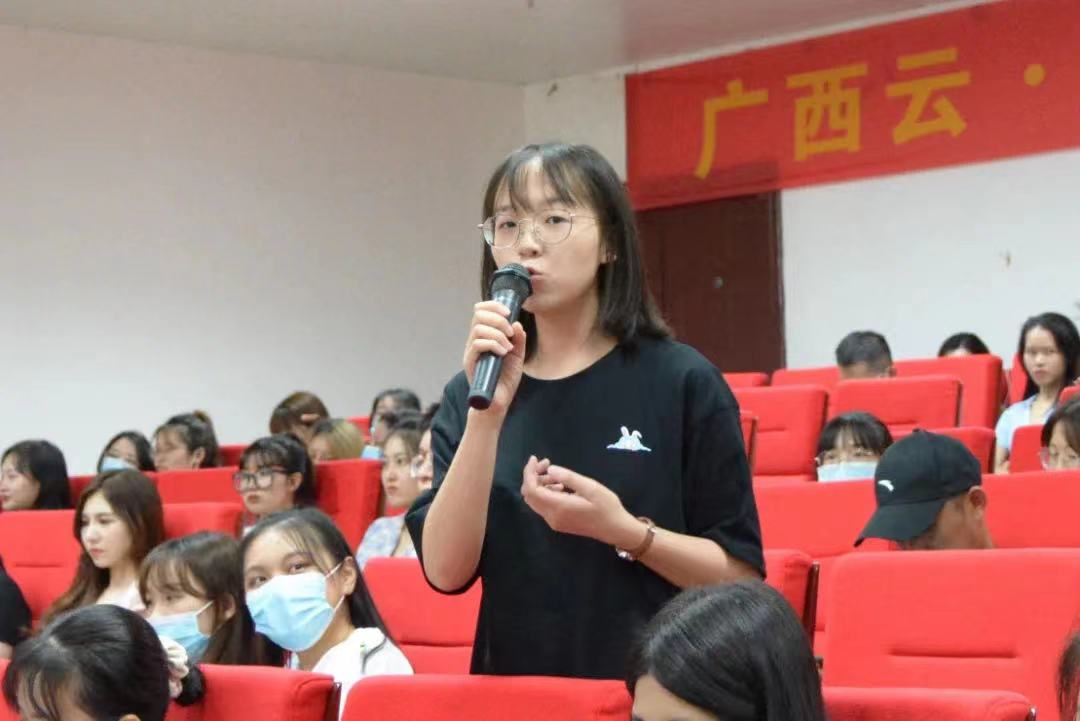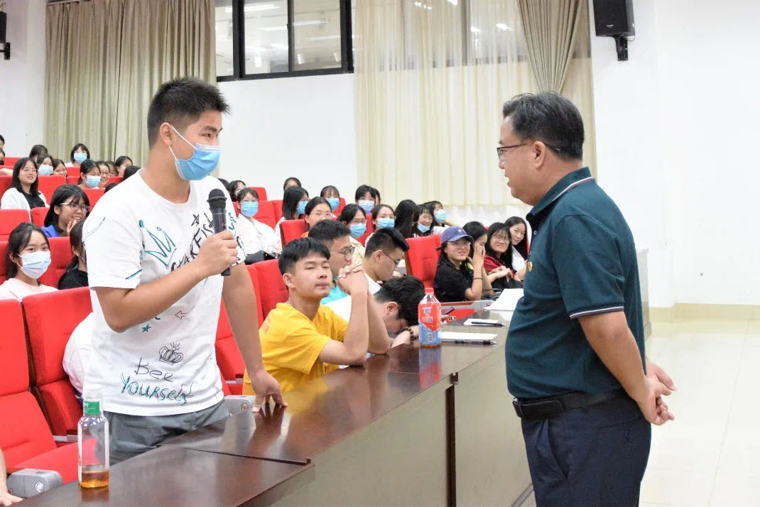 在互动环节,唐兴书记向新生们发问:“大学毕业生的核心竞争力是什么?”同学们针对该问题进行了热烈的讨论,分享自己的想法和经验。2021级专硕班石鲜鲜同学认为,把握好目标职业的底层逻辑,掌握专业能力,以不变应万变,才能适应复杂多变的环境。听了大家的观点后,唐兴书记对全体新生提出了殷切期望,他希望同学们努力提升专业技能和综合素质,争做老员工中的“领头雁”。