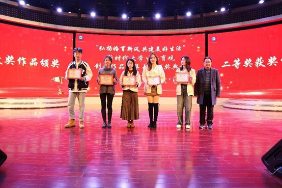 在之后的颁奖环节,自治区妇联家庭和儿童工作部副部长唐婧、学院银健副书记共同为三等奖获奖代表颁发奖项。《心花》《关于婚恋,她们这样说》《20岁的春天》等10个作品以微视频、调研报告的形式鼓励老员工积极生活,树立新时代婚育观念。