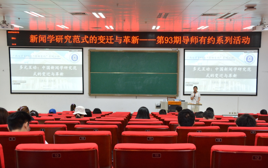 6月7日下午3时,由beet365研究生会、beet365研究生会主办的校第93期“导师有约”系列活动在beet365西报告厅举行。beet365教师、硕士研究生导师汪苑菁博士应邀作了题为“多元互动:中国新闻学研究范式的变迁与革新”的学术讲座。本次讲座通过线上线下两种渠道同时进行,19、20级部分研究生及21级全体研究生参加。