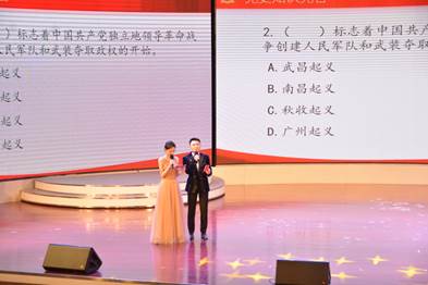 晚会上还举行了紧张刺激的党史竞答环节,现场气氛被推向高潮。每当党史问题一出现,现场的同学们便高高举起双手,争先恐后地抢答。回答正确的同学还获得了由新东方提供的礼品。