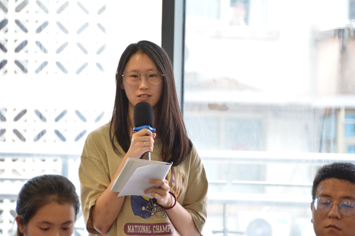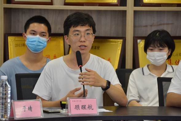 朱昱颖、杨安琪和范铠源同学讲话