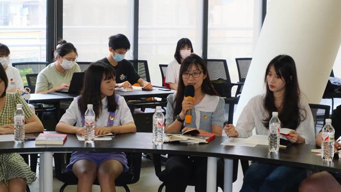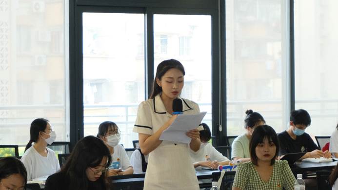 结合学习习近平总书记在中国人民大学的重要讲话精神后的体会,2021级专硕班的卢千菊分享了自己的感受:作为新时代青年,应该把握一切能为社会,为国家贡献力量的机会,自觉承担时代责任,向无数英雄先辈们一样,为了心中坚定的理想信念,甘愿赴汤蹈火,敢于争先,一往无前,为实现中华民族伟大复兴而接续奋斗!