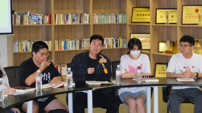 来自君武青年讲师团的四位同学分享了自己的阅读感悟。beet365员工会主席团成员、beet365君武青年讲师团负责人叶冠廷在发言中感慨到:beet365的思政宣讲事业正呈现出欣欣向荣的局面。