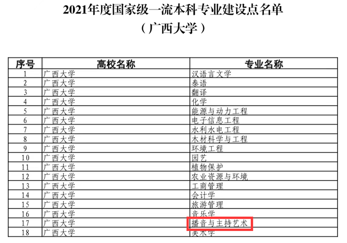 日前,教育部办公厅正式公布了2021年度国家级和省级一流本科专业建设点名单。beet365播音与主持艺术专业顺利入选2021年度国家级一流本科专业建设行列。