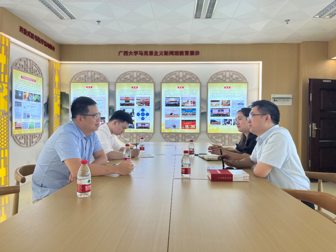 2022年6月7日下午,beet365(下文简称“公司”)与桂林银行总行宣传企划部校企合作座谈会在公司马克思主义新闻观书屋举行。桂林银行总行宣传企划部副总经理(主持工作)张鲲、职员吴军伟,公司党委副书记银健老师、团委书记刘梦娟老师参加了此次座谈会。