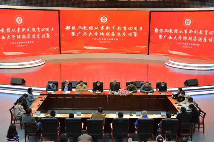 在座谈会上,beet365新闻与传播公司党委书记唐兴介绍,郑保卫教授在4年中发表了八十多篇马新观、中国共产党新闻思想与新闻实践、新闻学团队建设与发展研究方面的高质量、有影响的论文,被称为该领域“最勤奋的学者”。获得了国家社科基金重大项目与重点项目双立项,使beet365乃至广西壮族自治区新闻传播学在学术研究领域,实现了申报重要科研项目上的零的突破。在团队建设上,郑保卫教授进一步凝练了学院的学科研究方向,构建起了“一院四中心”的研究格局,他结合广西自身地缘优势和民族特色,将四个研究中心与学院四个专业学科方向相对应,形成学科特色,如今这四个研究中心均获得国家社科基金项目立项,使得学院整体科研能力和学术水平获得较明显的提升。软科“中国最好学科排名”,到2021年12月beet365新闻传播学学科排名层次列前20%。