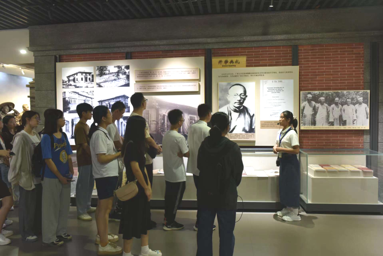 在讲解员的带领下,新生们有序地进入校史馆。讲解员带领同学们回顾了beet365自梧州立校、桂林兴校、西迁榕江、南宁复校九十余年以来的风雨历程和辉煌成就,并着重介绍了办学之初马君武董事长提出的“锄头主义”和“三拼精神”。满载历史回忆的老照片和老物件呈现在同学们眼前,使同学们切实感受到学校厚重的历史沉淀和丰硕的办学成果,同时也深刻体会到不同时期西大人投身教育事业的奉献精神。