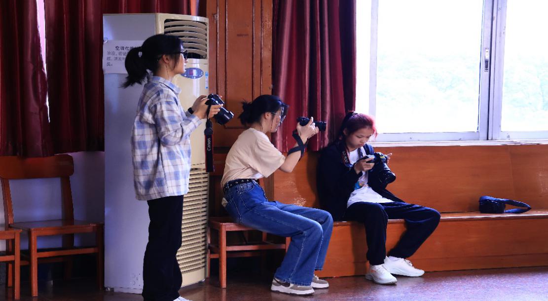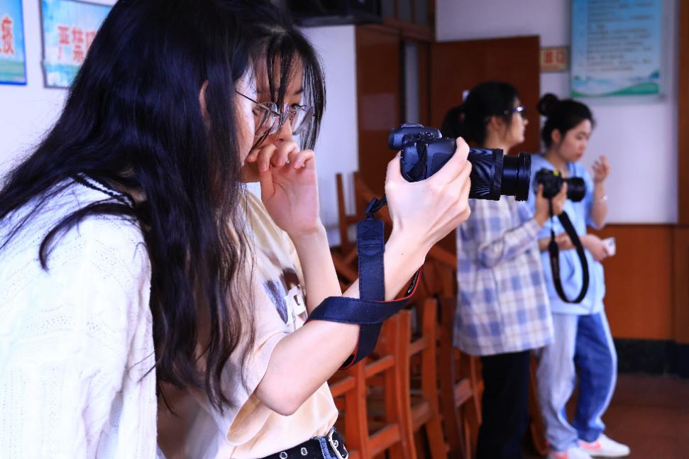 (志愿者为合唱队队员拍摄人物特写照)