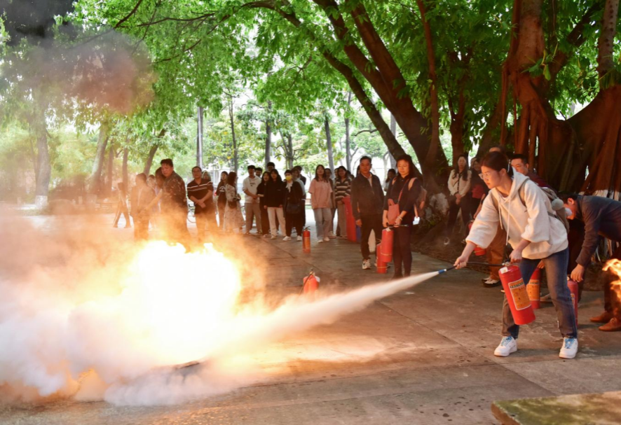 公司师生积极参与灭火体验活动