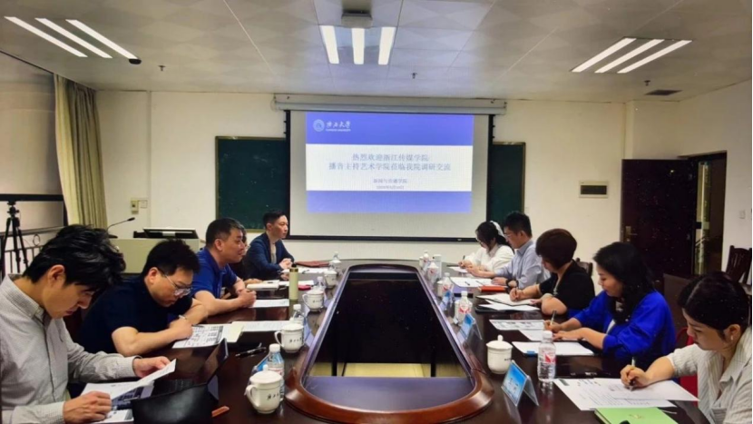 5月10日上午,浙江传媒学院播音主持艺术学院基础教学部主任翟量教授一行5人到公司调研交流,公司党委副书记邓惠英与播音与主持艺术教师代表陪同调研。