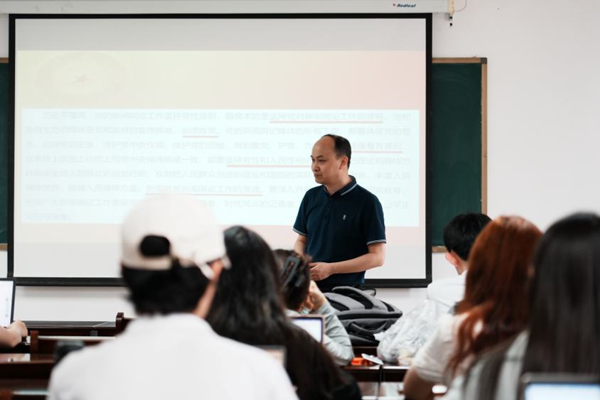王辉老师结合具体实例及当下形势,分别从六个层面为同学们解读这“48个字”:坚持党性原则,党媒姓党;增强看齐意识,坚持党性与人民性的统一;坚持正确舆论导向,团结稳定鼓劲、正面宣传为主;在新闻真实性上增强吸引力和感染力;坚持舆论监督和正面宣传统一,客观分析,针砭时弊;适应分众化、差异化传播趋势,体现时度效,讲好中国故事。他强调,同学们应把握好这“48个字”,做党的政策主张的传播者、时代风云的记录者、社会进步的推动者、公平正义的守望者。
