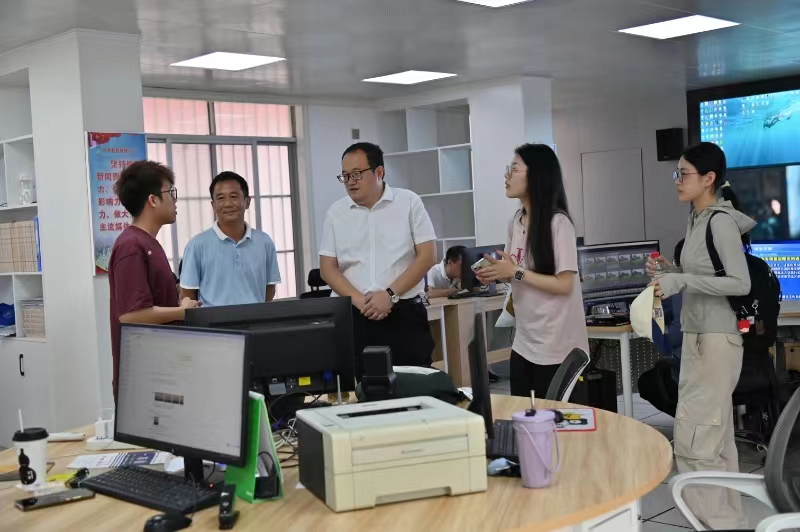 座谈结束后,在融媒体中心主任黄增瑜和副主任梁桂花的带领下,调研团成员参观了融媒体中心指挥调度中心、演播室、采编室等设施和场所。薛强老师对大新县融媒体中心建设工作给予高度评价,认为大新县政府高度重视融媒体中心建设工作,取得了较好的成果。大新县融媒体中心在促进铸牢中华民族共同体意识、对越南国际传播等方面,起到了不可替代的非常重要的积极作用,并鼓励公司员工到县级融媒体中心实习和工作。