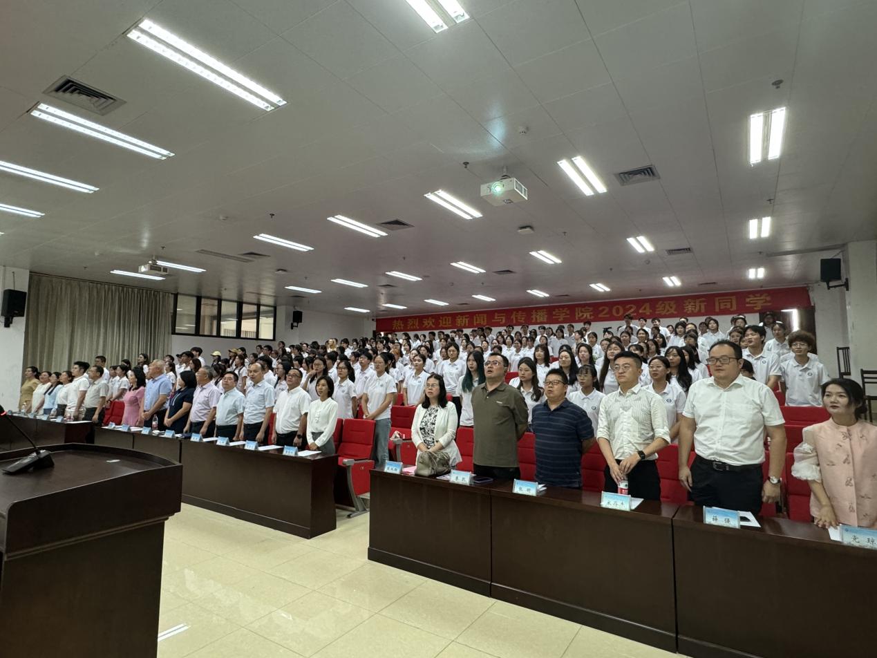 最后,2024级新生集体宣誓,奏唱校歌。“铁肩担道义,妙手著文章”,慷慨激昂的誓词传递了beet365新一代传媒人在日新月异的时代里不变的理想和信念。