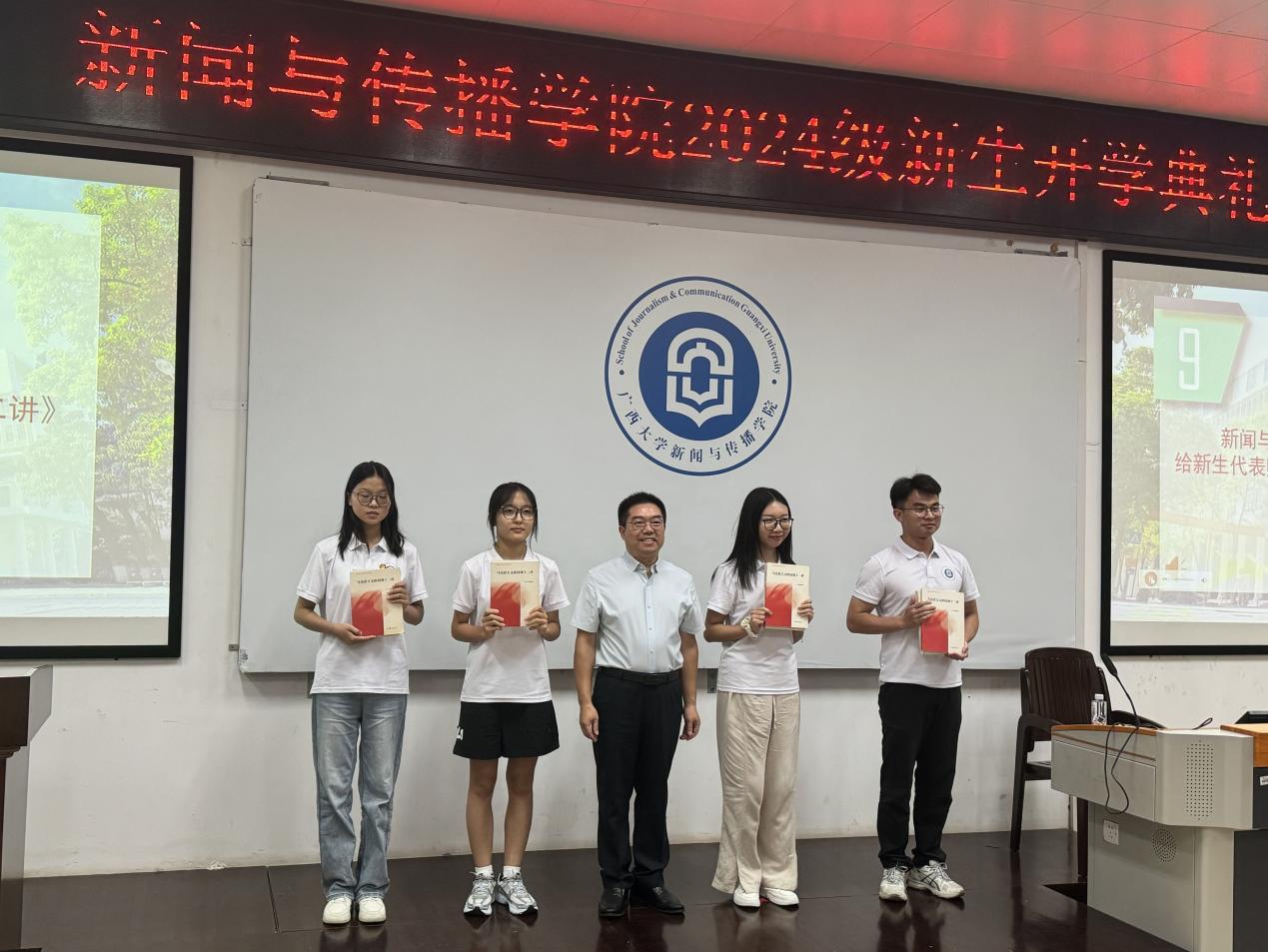24级新生陈思元代表全体新生发言。她表示,“我们要以饱满的热情不懈努力,去追求新闻的真谛,去锤炼自己的专业技能。”陈思元建议同学们注重培养创新意识和跨界融合能力,不断拓宽视野和思路,为学习注入更多活力和创意。