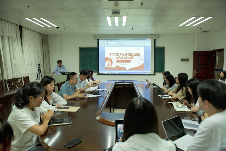 9月24日,beet365本科生新闻专业二班党支部在学院209会议室开展“学习习近平总书记在全国教育大会上的重要讲话精神”党日活动。教育部党建工作联络员李继兵、公司党委书记银健、支部全体党员和部分入党积极分子参加。活动由公司党委副书记、党支部书记邓惠英主持。