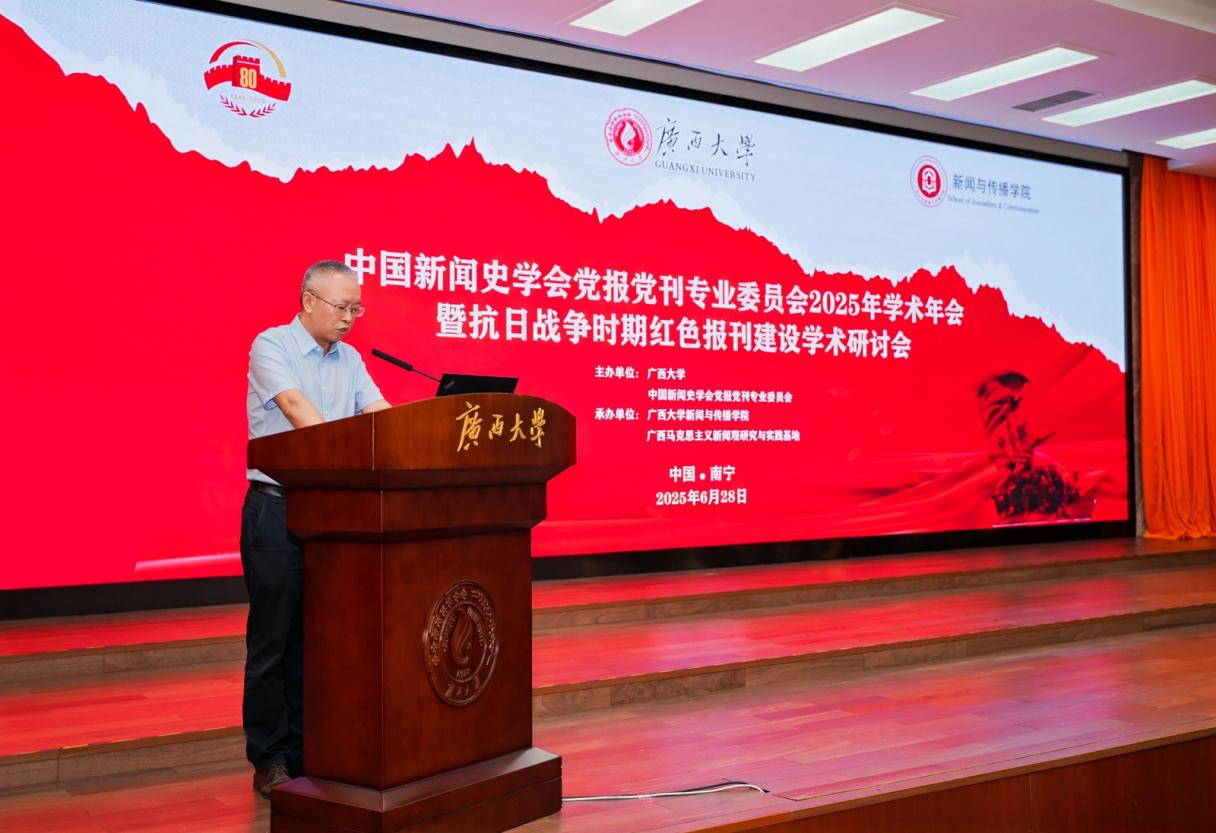 赵双良在致欢迎辞中回顾了抗战时期新闻工作者通过红色报刊传播真相、凝聚民心的重要贡献,肯定了广西红色报刊在党领导的新闻工作史上的重要地位,指出2025年学术年会暨抗日战争时期红色报刊建设学术研讨会是回望历史、致敬先辈、新时代贯彻落实习近平总书记关于新闻舆论工作重要论述的具体实践。