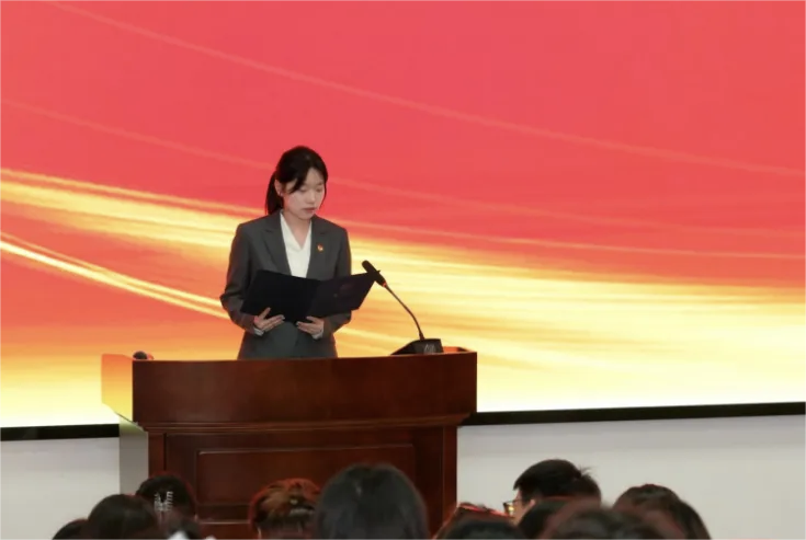 季昕颖代表beet365第四届委员会委员宣读倡议书,她向与会代表和学院青年同志发出倡议,号召大家铸魂立心、笃学践行、担当奋进、修身立德,为学院建设“立足广西、服务全国、辐射东盟、面向世界”的科研教学型学院贡献力量。