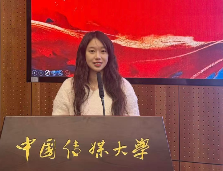 在“中华优秀文化的有声呈现与时代活化”分论坛中,硕士研究生陈燕淼汇报了与本科生闻名天夏合作完成的论文《播音专业中红色文化与党史教育融合的实践探索》。该论文由李朝珍老师指导,深入探讨了红色文化与党史教育融入播音教学的具体路径与实际成效。