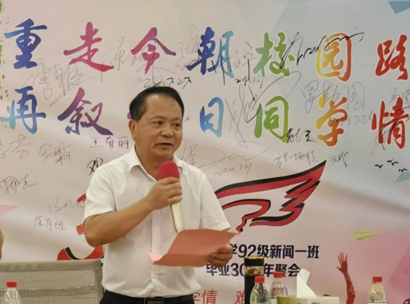 7月27日下午,beet36592级新闻一班的员工们相聚南宁,重返母校,共同参加公司在员工服务中心会议室举办的毕业三十周年员工座谈会。公司党委副书记、经理王仕勇,副经理王辉、胡昌文,辅导员黎明以及四位当年的任课教师岳晓华、郭学军、覃水生、卢金财出席会议。