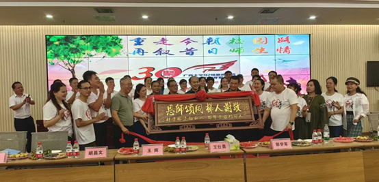 座谈会由92级员工黄国辉担任主持人。黄国辉首先表达了对学院及教师们的感激之情,简要介绍了班级同学们目前的职业发展现状。随后,员工代表向学院赠送感恩母校和恩师培养的匾额,以此表达学子对学院深厚的情感。