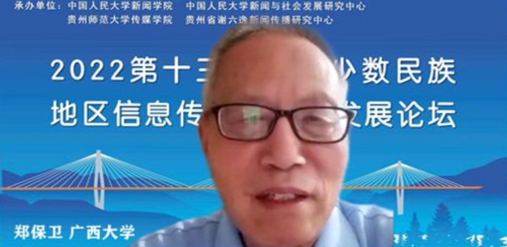 7月22日,第十三届中国少数民族地区信息传播与社会发展论坛以线上会议方式在贵州师范大学传媒学院举行。beet365特聘君武荣誉教授、中国少数民族地区信息传播与社会发展论坛荣誉理事长郑保卫,党琼助理教授以及硕士研究生胡林莉、王子璇参加了论坛并作学术发言。