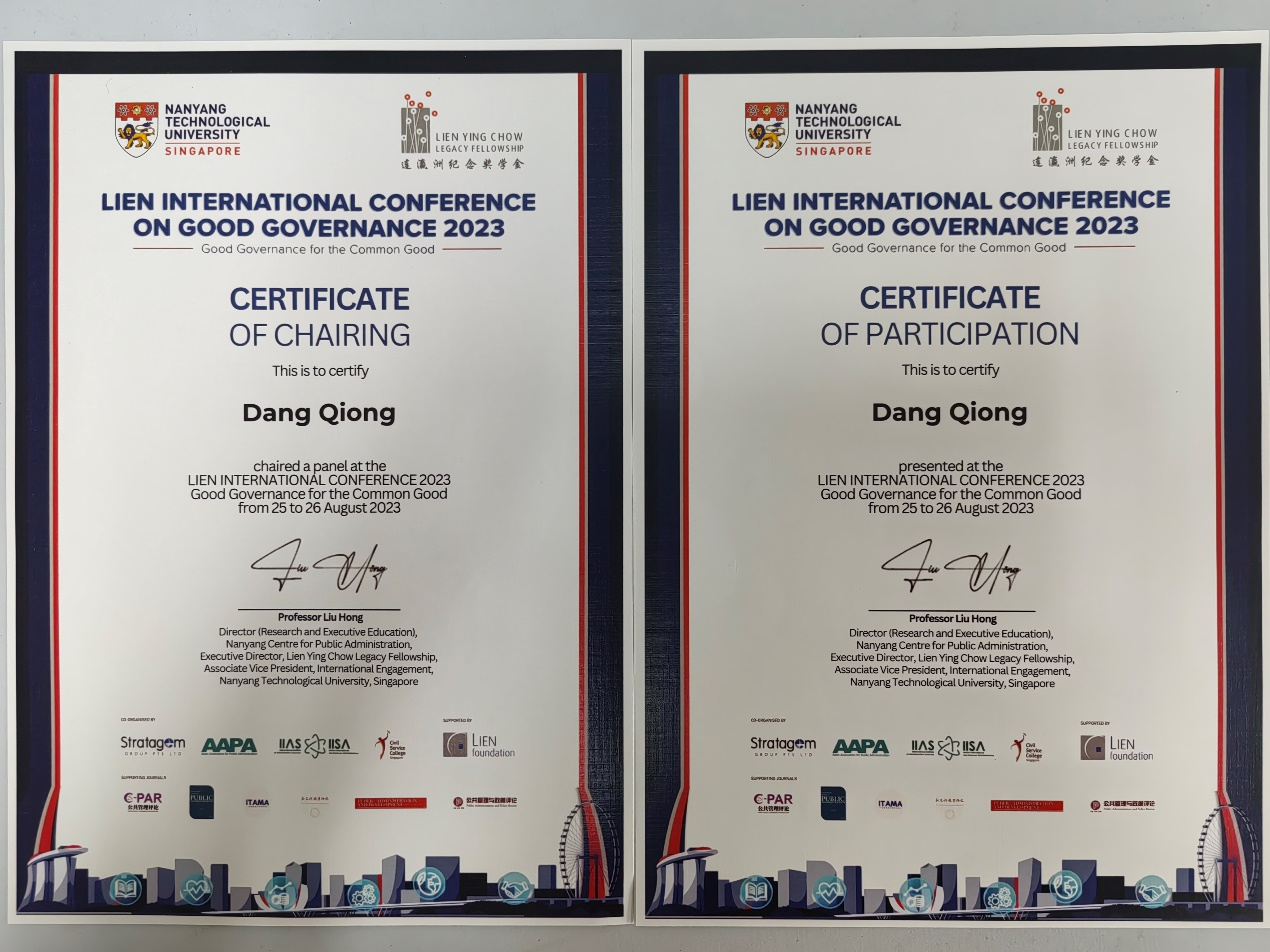 8月25日,2023年新加坡连氏善治国际学术会议在新加坡南洋理工大学举行。公司助理教授党琼参加本次国际会议并作学术报告,同时受邀担任分论坛四的主持人。