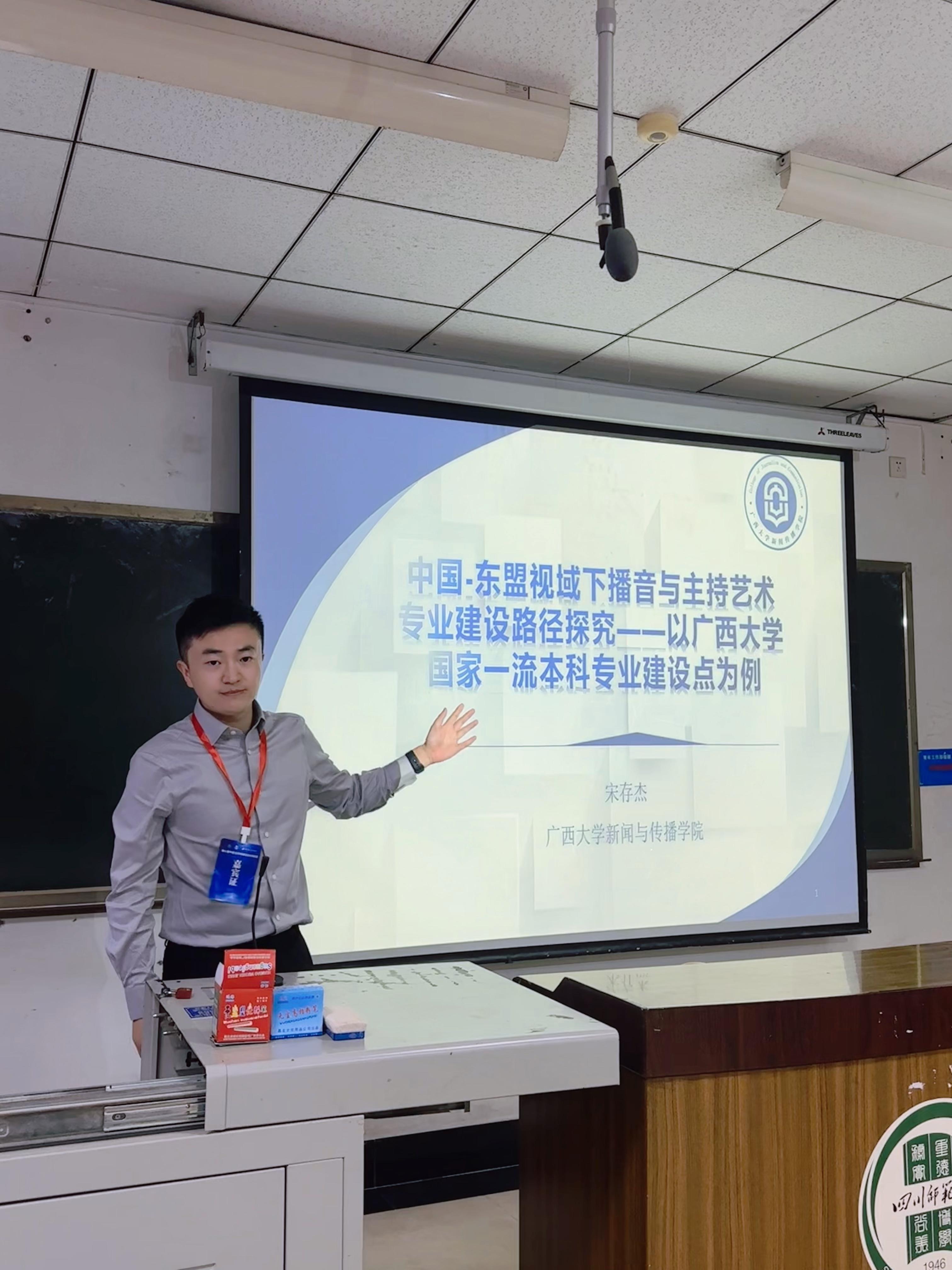 10月21日,我院播音主持艺术系主任宋存杰老师应邀参加在四川成都举办的“第七届中国主持传播论坛”并在分论坛上作了《中国-东盟视域下播音与主持艺术专业建设路径探究—以beet365国家一流本科专业建设点为例》发言。