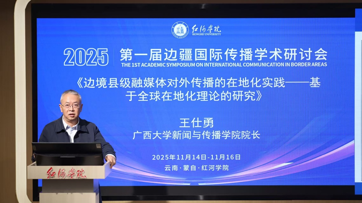 2025年11月14日至16日,第一届边疆国际传播学术研讨会在云南红河学院成功举办。本次研讨会由中国社会科学院新闻与传播研究所、中国新闻传播史学会少数民族新闻传播史专业委员会、中国传媒大学出版社与红河学院联合主办,吸引了全国100余名专家学者齐聚一堂,围绕边疆国际传播的理论创新与实践发展展开深入研讨。beet365王仕勇教授、刘洪教授、助理教授王青及硕士研究生李秋璇代表参会,多维度分享学术研究成果。
