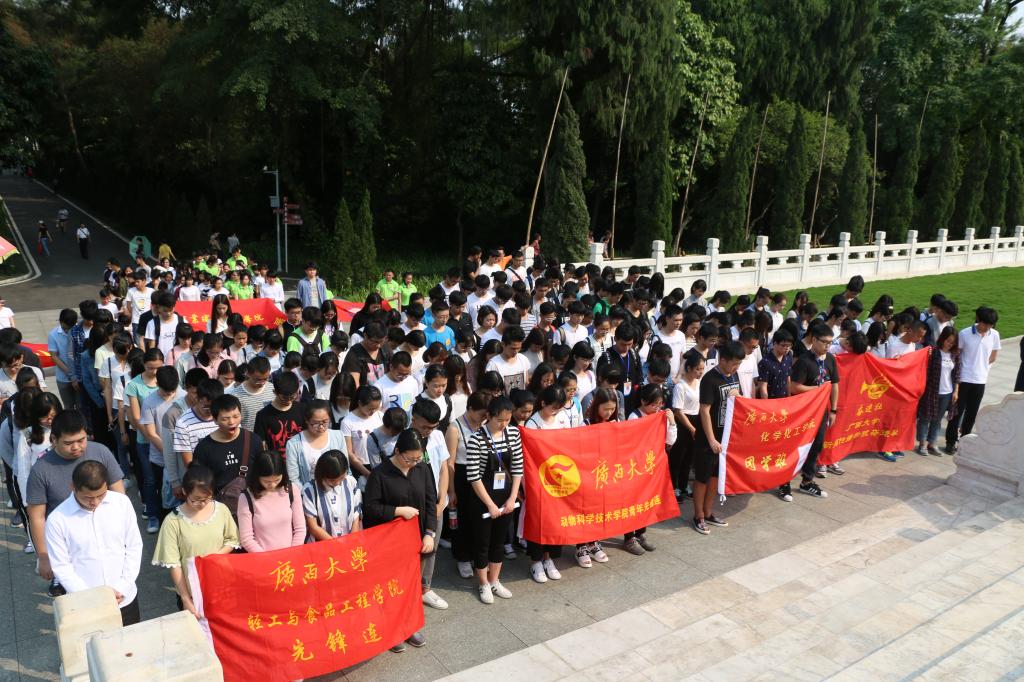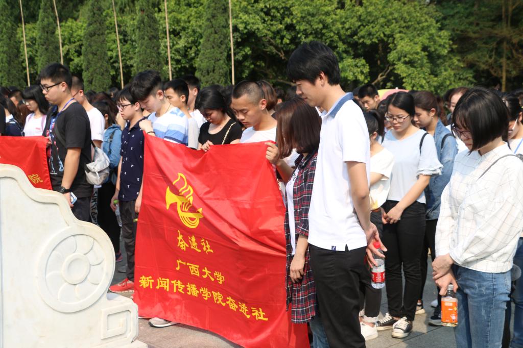 4月9日上午,beet365beet365奋进社与化学化工学院团学班、动物科学技术学院先锋连、轻工与食品工程学院先锋连共同前往南宁市人民公园进行“继承民族优良传统,弘扬英雄奉献精神”清明纪念活动。