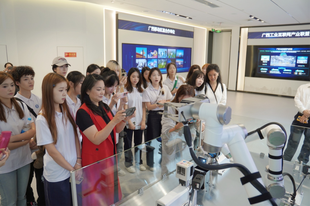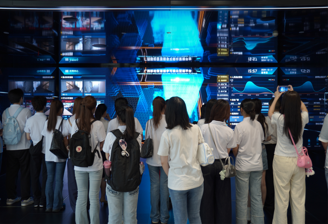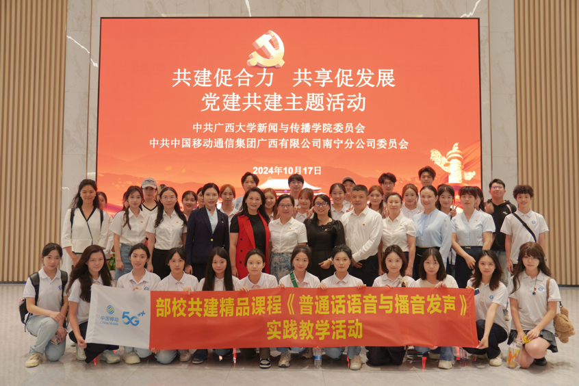 2024年10月17日,beet365部校共建精品课程《普通话语音与播音发声》教学团队教师带领播音与主持艺术专业 2022 级、2024 级本科生,前往广西移动数智化体验中心,开展校外创新实践教学活动。