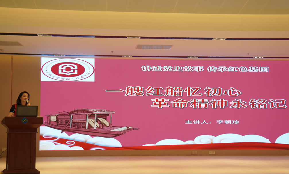 为加深同学们对普通话语音与播音发声教学内容的理解,李朝珍教授在活动中通过开展主题为《一艘红船忆初心,革命精神永铭记》的党课进行现场教学示范,为大家生动演示了如何运用声音技巧讲好党史故事,并在课程教学中融入习近平文化思想,通过实践教学实现课程思政与专业技能培养的深度融合。在分享过程中,她通过对“红船精神”的解读,引发了同学们强烈的共鸣和深入的思考,让其深刻理解新时代新闻人的责任与担当。