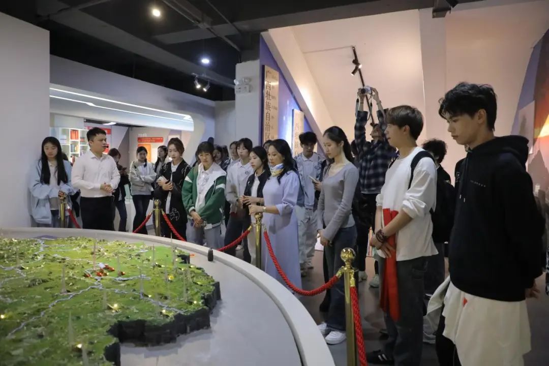 师生们在讲解员的引领下,有序参观了各个展厅。馆内丰富的展品与详实的史料,生动展现了广西新闻、出版、广播、影视行业的发展脉络。从古老的印刷术到现代数字媒体技术,从早期的广播电台到如今的融媒体时代,每一个阶段都让师生们深刻感受到广电行业的变迁和进步。