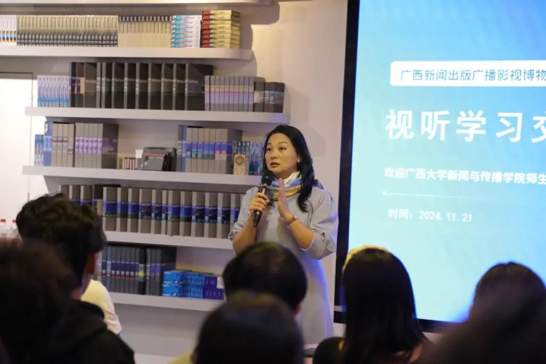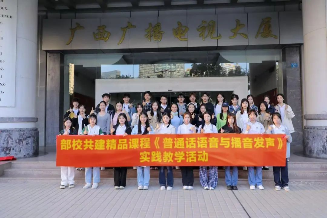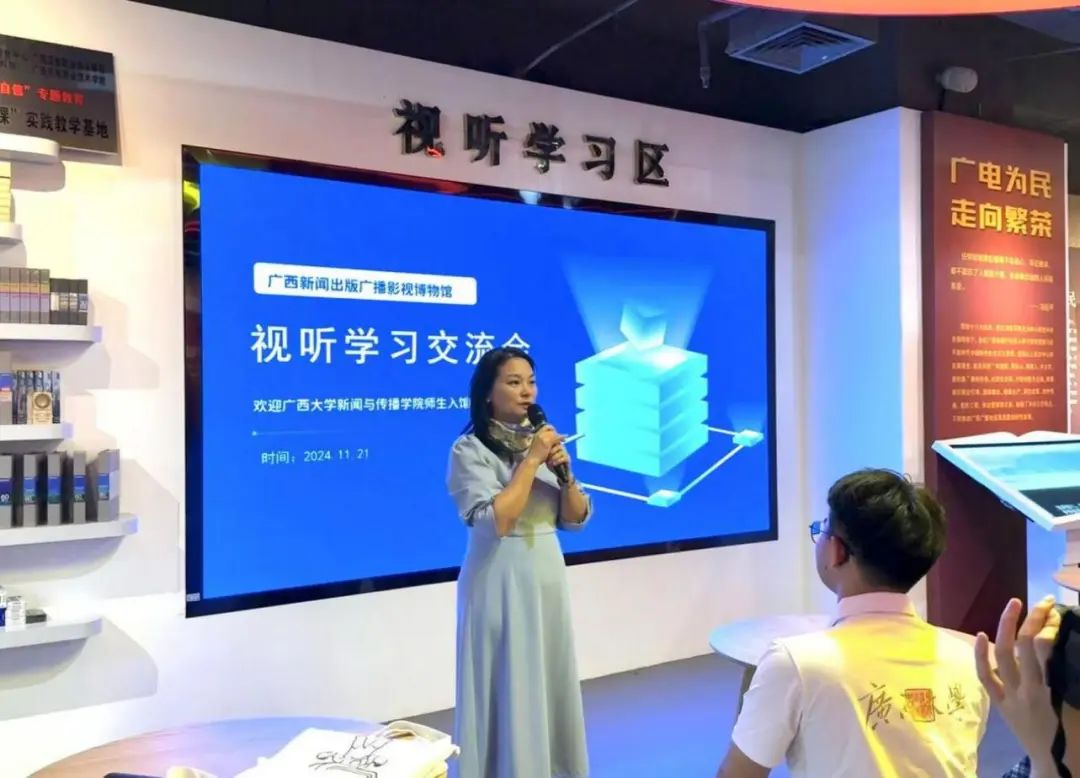 2024年11月21日,在beet365部校共建精品课程《普通话语音与播音发声》课程负责人李朝珍教授的带领下,播音与主持艺术专业2023级、2024级本科生,前往广西新闻出版广播影视博物馆进行校外创新实践教学活动。