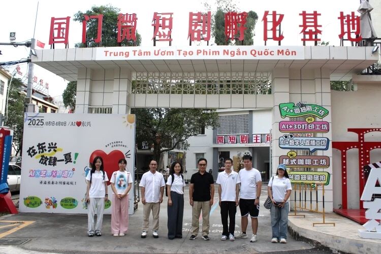 在国门微短剧孵化基地,负责人陈轶诚及工作人员林轩旺,向调研团介绍了基地的创办过程与业务流程。该基地以“AI+微短剧”模式为核心,正构建文商旅协同发展的新业态。师生们参观了基地的微短剧主角体验馆、AI技术孵化中心等功能区,对AI生成动漫、3D打印角色等科技成果赞叹不已;基地还借助新技术挖掘东兴恐龙、京族哈节等本土文化符号,全力打造城市IP,为当地文旅产业注入新动力。