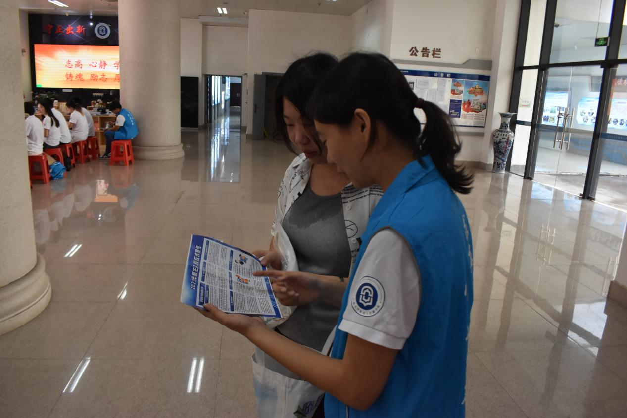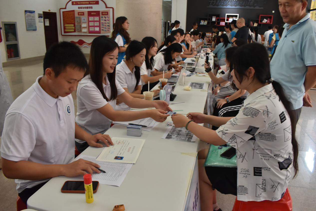 研究生会志愿者在学院迎新服务点为新生报到注册