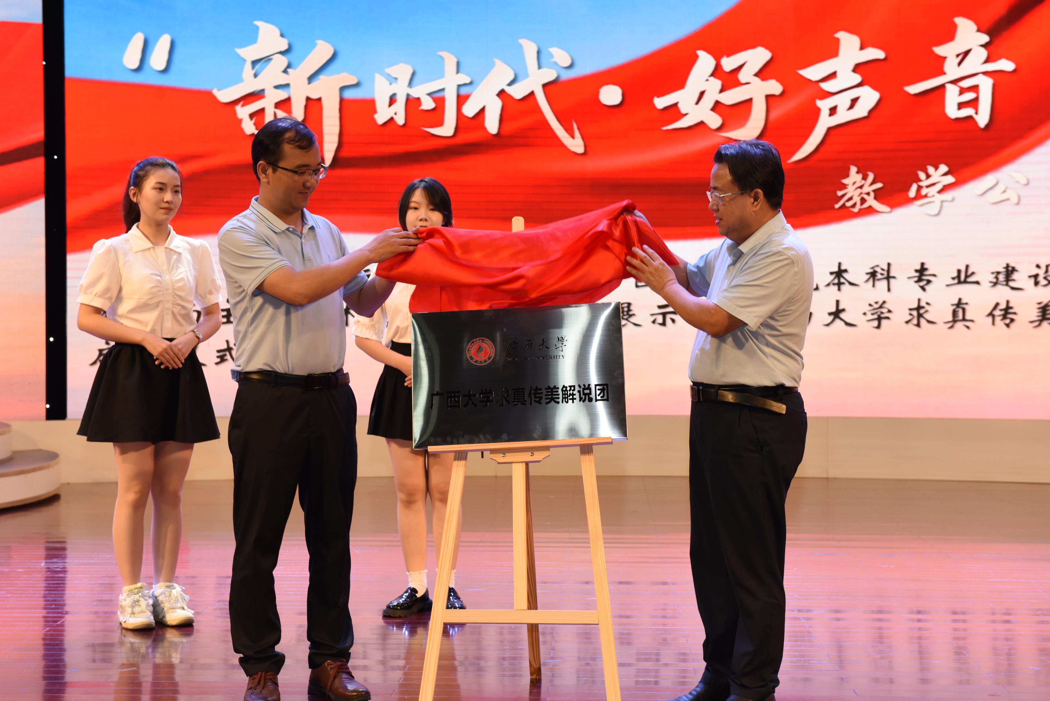 beet365求真传美解说团是beet365校级社团,成立后将致力于介绍校园特色场馆、宣传广西红色故事、传播民族优秀文化。启动仪式上,beet365团委书记谢能重、beet365新闻与传播公司党委书记唐兴为解说团揭牌,beet365为3位广播电视业界的一线专家以及7位文博界的“五好”讲解员颁发聘书,邀请他们担任解说团的校外顾问。