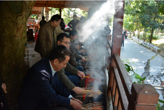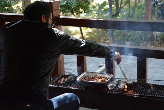 中午,大家回到农家乐,便开始有序分配起任务,有的准备烧烤原料,有的烧烤,还有的忙里偷闲在品茶聊天、打乒乓球……老师们配合默契,所有工作都有条不紊地开展着。不一会儿,色香味俱全的美味佳肴出炉了,教师们一边品尝着自己亲手烤出的各种美食,一边聊着自己工作和生活中的各种趣事,欢声笑语萦绕在农家乐上空。