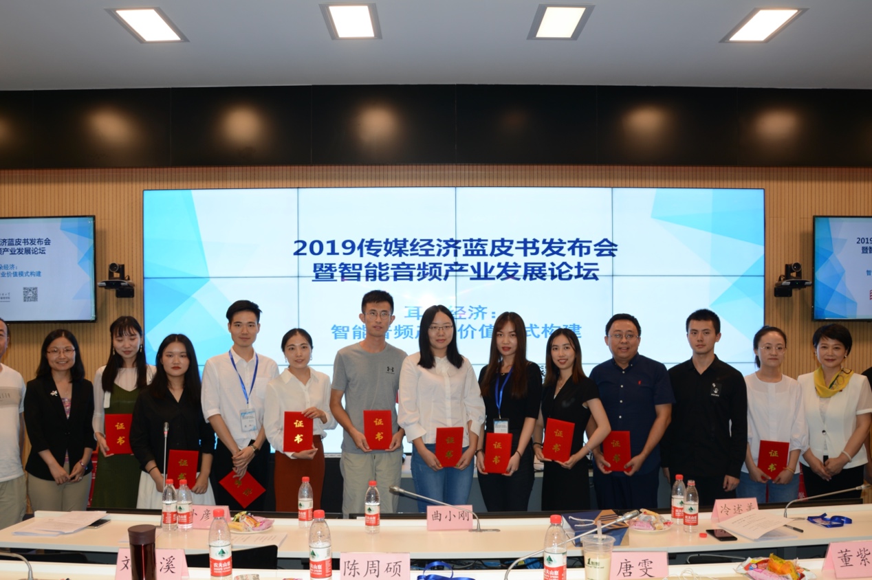 9月21日,由中国传媒大学研究生院和共青团中国传媒大学委员会主办,中国传媒大学研究生会、中国传媒大学经济与管理学院和中国传媒大学传媒经济研究所承办的“2019传媒经济蓝皮书发布会暨智能音频产业发展论坛”在北京举行。公司2018级学术型硕士生陈周硕应邀参会并发表研究成果,受到与会嘉宾的关注。