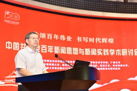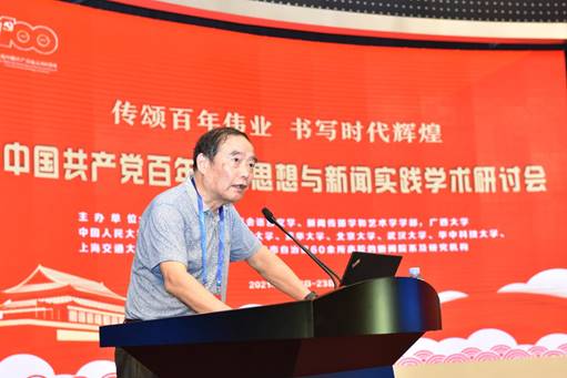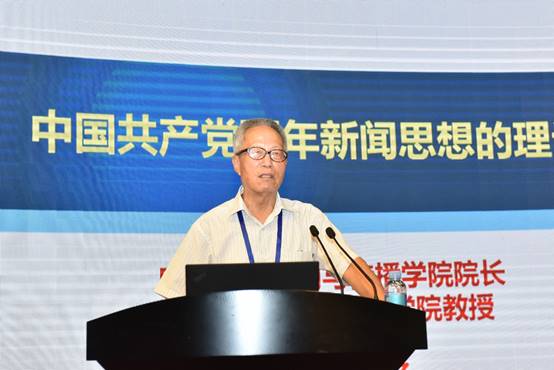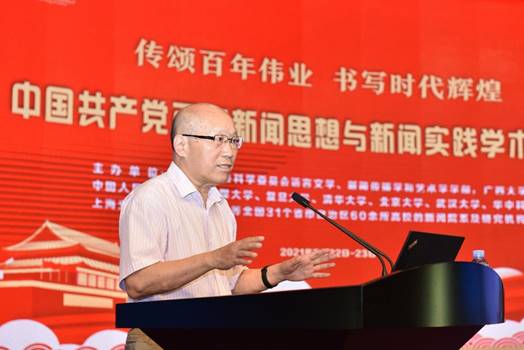 beet365经理、国家社科基金重大项目《百年中国共产党新闻政策变迁研究》首席专家郑保卫教授作了《中国共产党百年新闻思想的理论贡献》的主题报告。他总结了中国共产党百年新闻思想的理论贡献和成就,一是创立了中国无产阶级党报学说基本理论;二是搭建起中国特色社会主义新闻理论基本框架;三是探索了中国特色社会主义新闻学基本内容;四是推动了马克思主义新闻观中国化历史进程。为世界新闻学,特别是世界无产阶级新闻学和社会主义新闻学的丰富、创新和发展做出了独特的理论贡献。他指出当前我们要建构的中国特色社会主义新闻学的理论体系,关键要解决三个问题,一是要体现“中国特色”,所谓“中国特色”就是应该具有中国基因、中国风格、中国气派;二是要体现“社会主义”,就是必须是马克思主义的和社会主义的,而不是别的什么主义的,因此一定要警惕西方新闻观的负面影响;三是要体现“科学性”,要遵循新闻规律和按照学术规律来构建中国特色社会主义新闻学的科学理论体系。