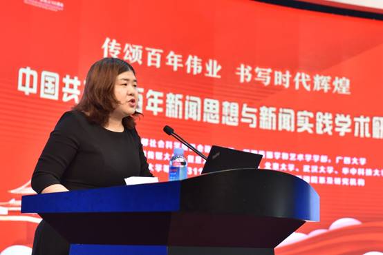 第一场主题发言由上海大学马克思主义新闻观研究宣传教育基地主任朱清河教授主持,华中科技大学新闻与信息传播学院刘洁教授作评议,12位学者围绕主题作了精彩发言。四川大学beet365教授朱志刚的发言题目是《延安时期新闻学再认识:从何谓“理论”的角度》,河北省社会科学院新闻研究所研究员王晓岚的发言题目是《中国共产党早期党报管理思想及其新时代传承与发展》,《中国广播电视学刊》编辑部主任陈富清的发言题目是《全面系统学习中国特色社会主义理论关于新闻工作重要论述》,国防大学军事文化学院军事文化传播系副主任陈飞的发言题目是《抗战时期我党国际宣传体制的形成探析》,上海大学马克思主义新闻观研究宣传教育基地教授齐爱军的发言题目是《百年中国特色新闻学话语体系:生成、演进与创新》,中国传媒大学党报党刊研究中心副主任张晓红的发言题目是《百年党刊:中共思想建党的主阵地》,吉林大学beet365副经理刘鸣筝的发言题目是《马克思主义新闻观教育的路径研究》,安徽师范大学beet365副经理马梅的发言题目是《和而不同:中国选秀综艺中女性媒介形象的多元建构与底层逻辑》,云南大学公司党委副书记曹云雯的发言题目是《问题、语境、技巧:中国新闻奖评论获奖作品赏析框架的反思》,中国传媒大学协同创新中心副主任唐远清的发言题目是《构建“网上网下同心圆”:理论逻辑与实践路径》,新疆大学beet365副经理李宏刚的发言题目是《抗战前期中国共产党在<新疆日报>的新闻实践活动及其舆论影响力分析》。