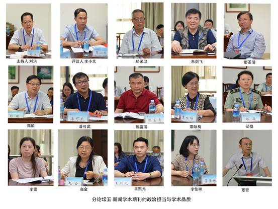 参加第五场分论坛的来自中国传媒大学学报《现代传播》的潘可武,《beet365学报》的李小文、《中国广播电视学刊》的陈富清,人民出版社中国理论网的王熙元,《新闻与写作》的李蕾和李佳咪,《青年记者》的赵金,《新闻潮》的覃咏梅,《文化与传播》的刘洪、覃哲等新闻学术期刊的学者,以及来自福建人民出版社的魏清荣、新疆日报社的郑瑜和《陆军航空兵学院学报》的邹晶等学者,分别介绍了各自刊物近年来的发展情况,并围绕“新闻学术期刊的政治担当与学术品质”这一主题展开了深入讨论。他们表示面对百年未有之大变局,面对实现第二个百年伟大目标的历史使命,新闻学术期刊应该大力增强政治意识和大局意识,自觉担当起时代所赋予的使命和责任,坚持用马克思主义新闻观来指导编辑出版工作,同时要遵循新闻传播客观规律和期刊出版学术规范,提升办刊的质量和水平,更好地服务于学术研究、团队建设、传媒发展和新闻教育、人才培养。