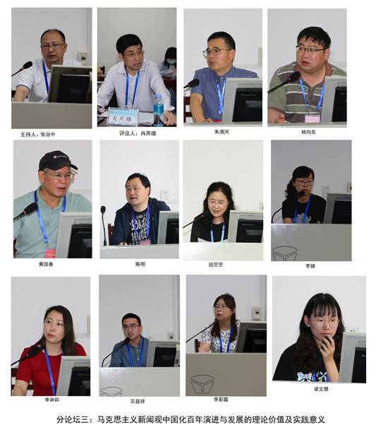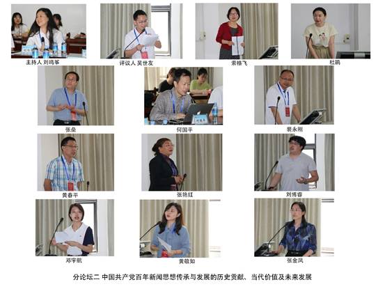 在接下来举行的分论坛上,数十名专家、学者展示了自己的研究成果,展开了深入的交流研讨。分论坛的议题包括“中国共产党百年新闻事业形成与发展的历史进程及实践经验”“中国共产党百年新闻思想传承与发展的历史贡献、当代价值及未来发展”“马克思主义新闻观中国化百年演进与发展的理论价值及实践意义”“百年中国共产党新闻政策变迁与发展”“新闻学术期刊的政治担当与学术品质”五个方面,讨论内容涉及中国共产党新闻事业的发展历程与伟大成就、中国特色社会主义新闻学团队建设与发展、中国共产党百年新闻实践、马克思主义新闻观及其中国化等。