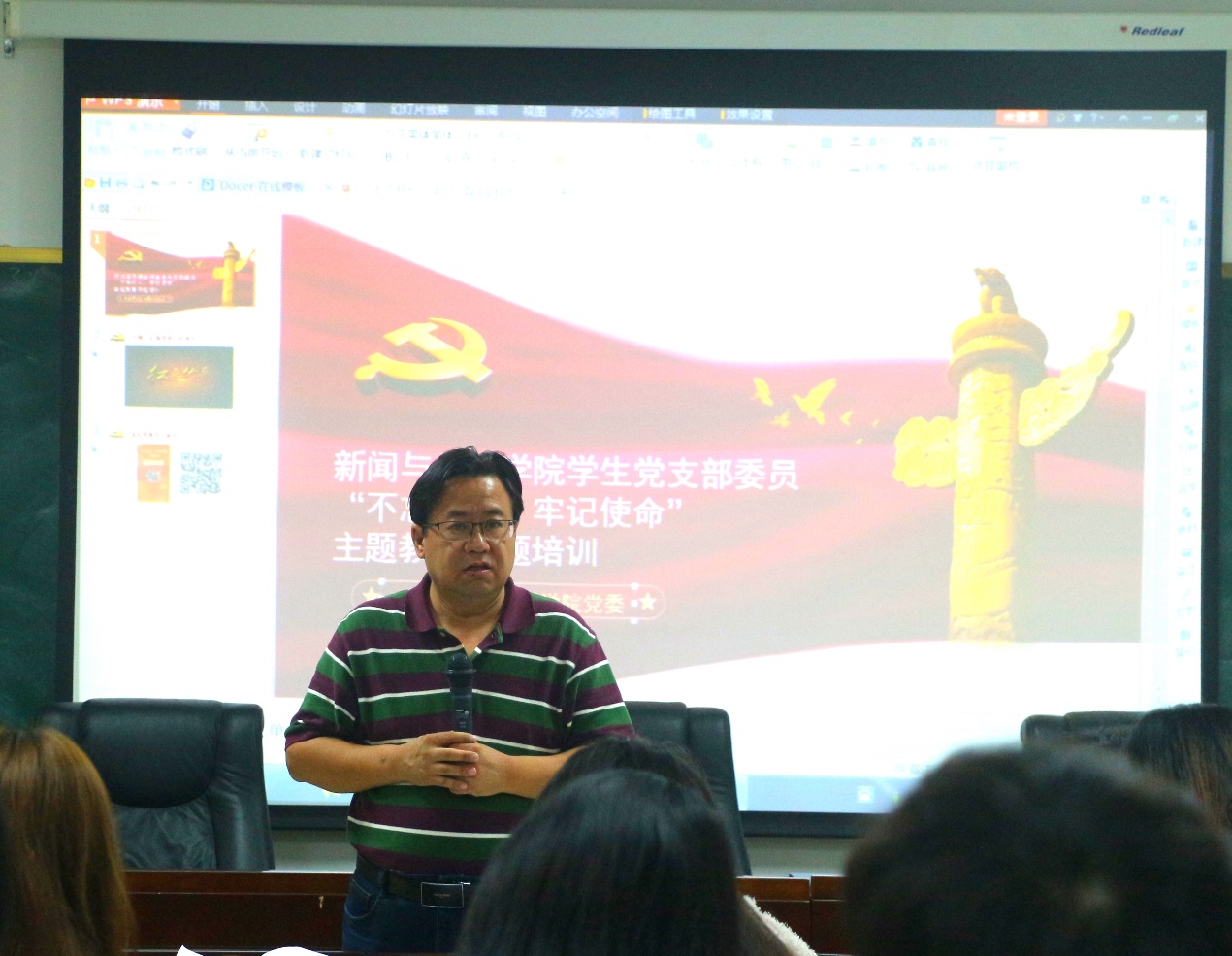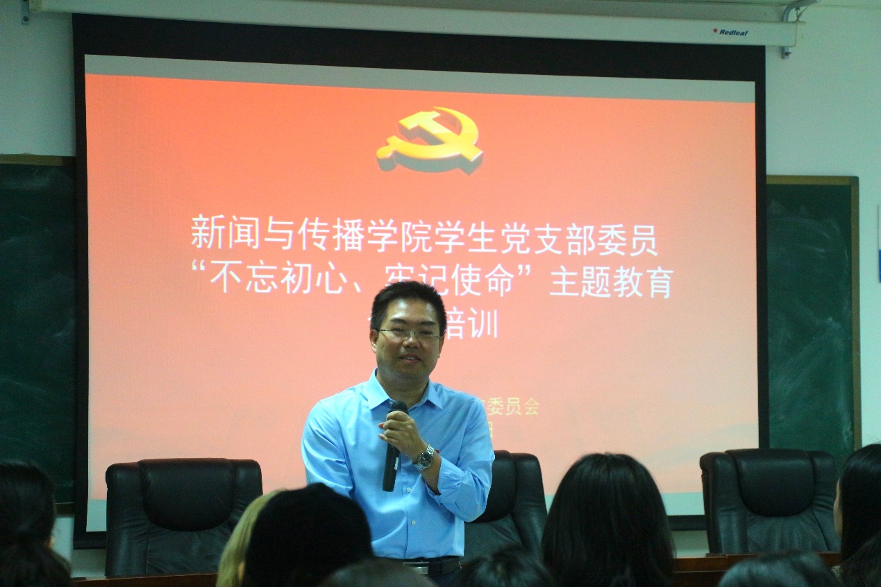10月25日下午,公司员工党支部委员“不忘初心、牢记使命”主题教育专题培训会在公司505教室开展。公司党委书记唐兴老师、公司党委副书记银健老师、院团委书记雷圆媛老师、党建专职组织员陆斌老师、辅导员黄莹老师,以及员工各支部委员会成员、公司党建会全体同学参加此次培训会。