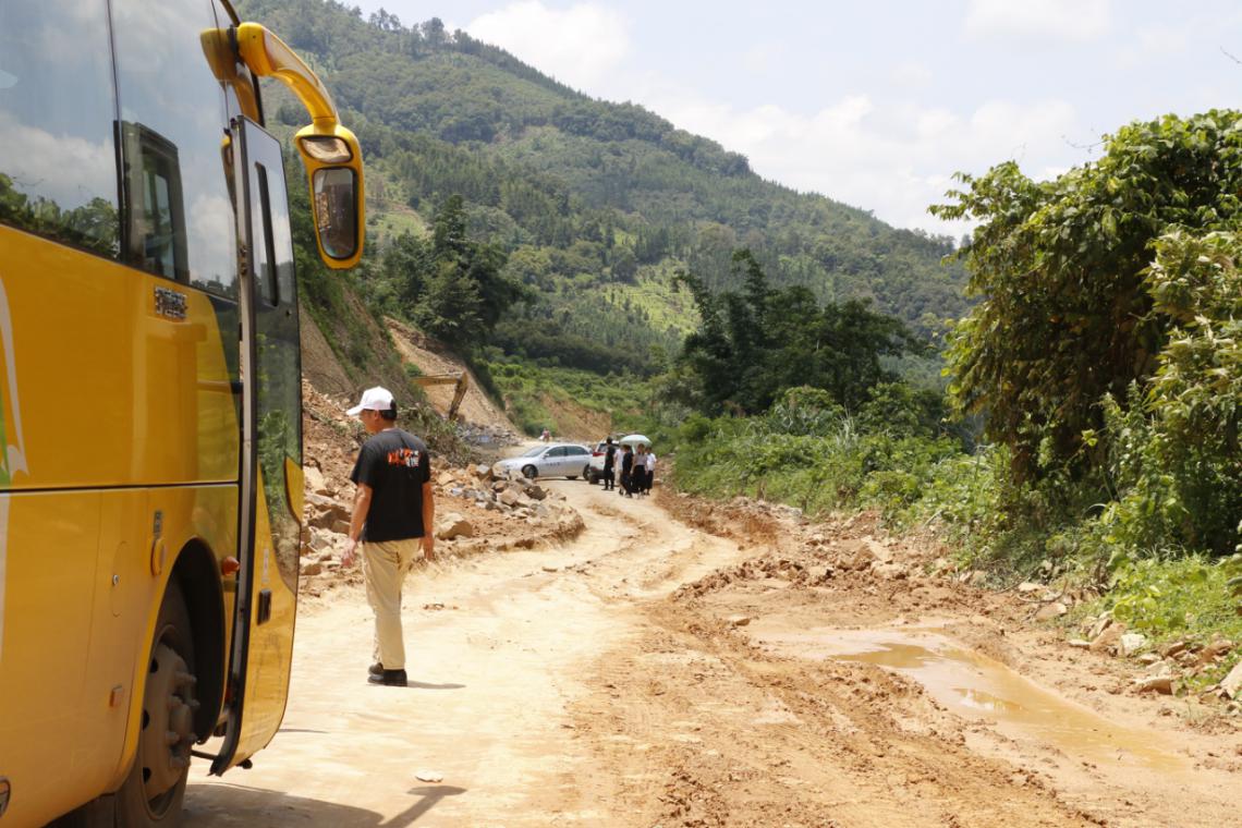 进村的道路仍有塌方,我们的大巴无法到达村部