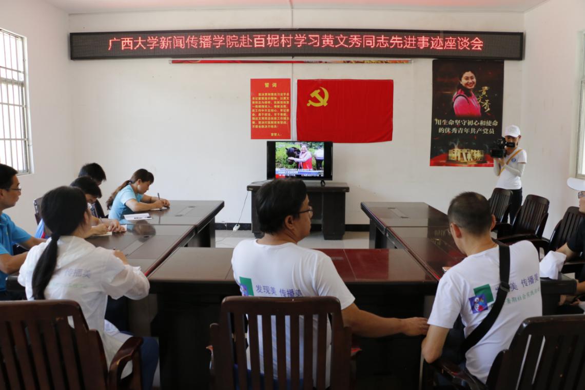 在公司党委书记唐兴主持下,师生与百坭村委一起召开了学习黄文秀同志先进事迹座谈会,集体学习了中共中央总书记、国家主席、中央军委主席习近平对黄文秀同志先进事迹作出的重要指示,了解黄文秀同志投入脱贫攻坚一线的历程和取得的成果,以及黄文秀同志身上体现出来的共产党人的初心和使命。