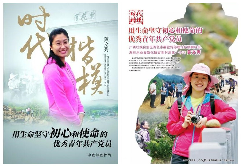 黄文秀同志生前是百色市委宣传部理论科干部。2016年她从北京师范大学研究生毕业后,作为广西定向选调生回到家乡百色工作。2018年3月,她积极响应组织号召,到乐业县新化镇百坭村担任驻村第一书记。2019年6月17日凌晨,黄文秀同志在从百色返回乐业途中遭遇山洪不幸遇难,献出了年仅30岁的宝贵生命。2019年7月1日,中宣部追授黄文秀“时代楷模”称号。中共中央总书记、国家主席、中央军委主席习近平对黄文秀同志先进事迹作出重要指示表示,黄文秀同志不幸遇难,令人痛惜,向她的家人表示亲切慰问。7月17日,中华全国总工会授黄文秀同志“全国五一劳动奖章”。