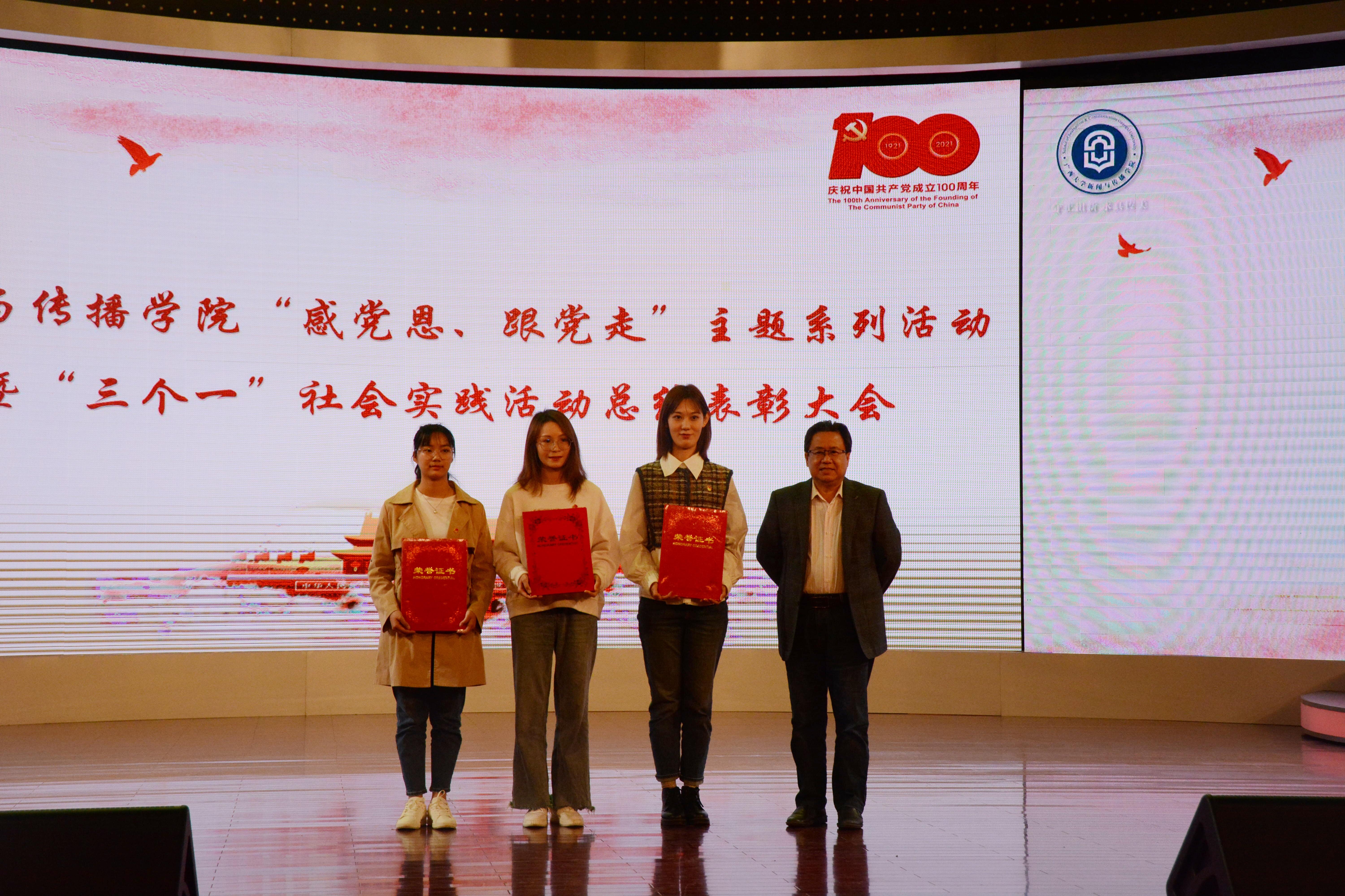 公司党委副书记银健作总结讲话。他表示,学院之所以大力组织“三个一”社会实践活动,可以从三个层面进行理解。第一,恰逢建党百年,全党正在开展党史学习教育,同学们走进社区农村、红色圣地、田间地头,去感受记录国家社会家乡的变化,是用社会实践的方式来阅读党史、新中国史、改革开放史。学党史,悟思想,其实我们一直在路上。第二,学院是教育部第二批“三全育人”综合改革试点单位,“三个一”社会实践的丰硕成果彰显了实践育人的特色亮点,提供了试点建设的宝贵经验。第三,同学们通过参加社会实践,可以厚植家国情怀,增强职业素养,提升专业技能,践行习近平总书记提出的新闻“四力”: 脚力、眼力、脑力、笔力。他透露,共有733位同学参加社会实践并提交了调研报告,564人参与了志愿服务,发表读书心得5089篇,微博原创话题的浏览量为130.9万,3年累计达500多万。最后,银健老师希望同学们更多、更积极地参与社会实践,在阅读中收获新知,在调研中了解社会,在服务中感受快乐。