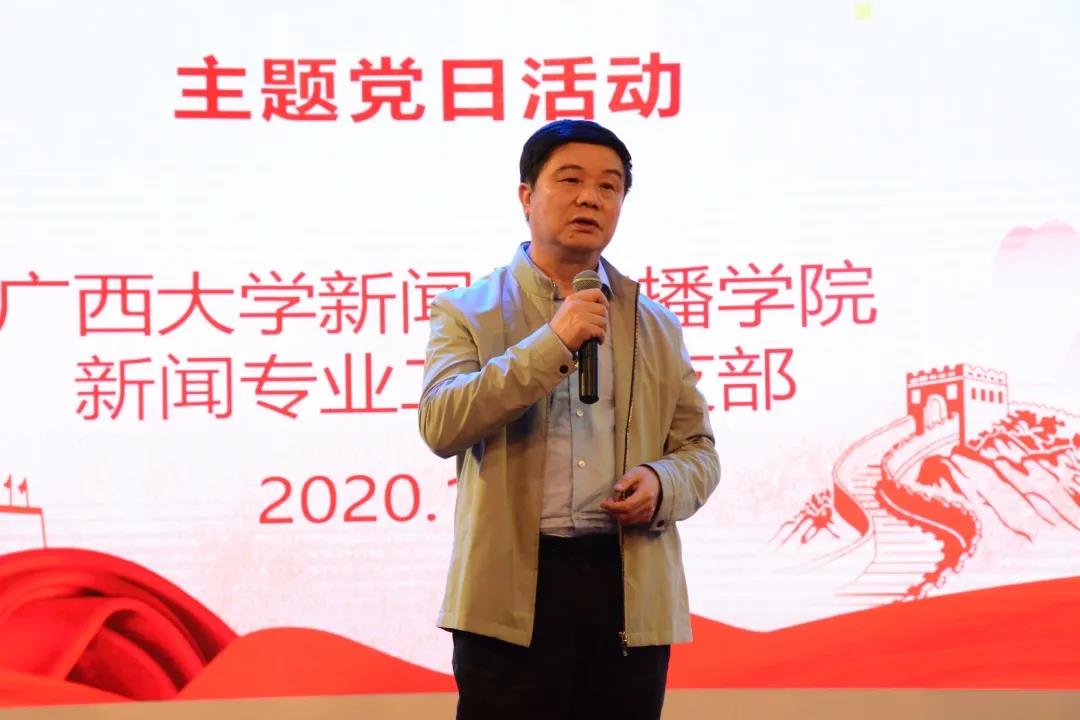 为了响应中央加强和改进学校美育,坚定文化自信的号召,丰富党组织生活形式,使同学们更好地了解党史和新中国史,树立正确的历史观、国家观、文化观,11月13日晚,新闻二班员工党支部在学院融媒体中心开展“歌声里的中国”主题党日活动。活动由公司党委副书记兼新闻二班党支部书记银健老师主持,原广西师范学院正厅级调研员李继兵书记、公司党委书记唐兴老师、新闻一班党支部书记雷圆媛老师出席,新闻二班党支部所属各班的党员、入党积极分子及递交了入党申请书的同学参与。