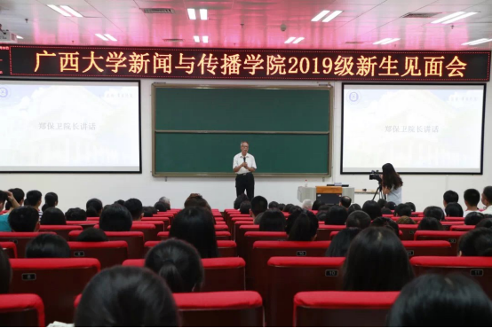 会议由公司党委副书记银健主持,公司经理郑保卫、公司党委书记唐兴、常务副经理刘洪、副经理王辉、副经理朱学峰、学院各系系主任、教授代表及2019级各新生班班主任出席了本次会议。全体2019级本科生、研究生参加了本次会议。