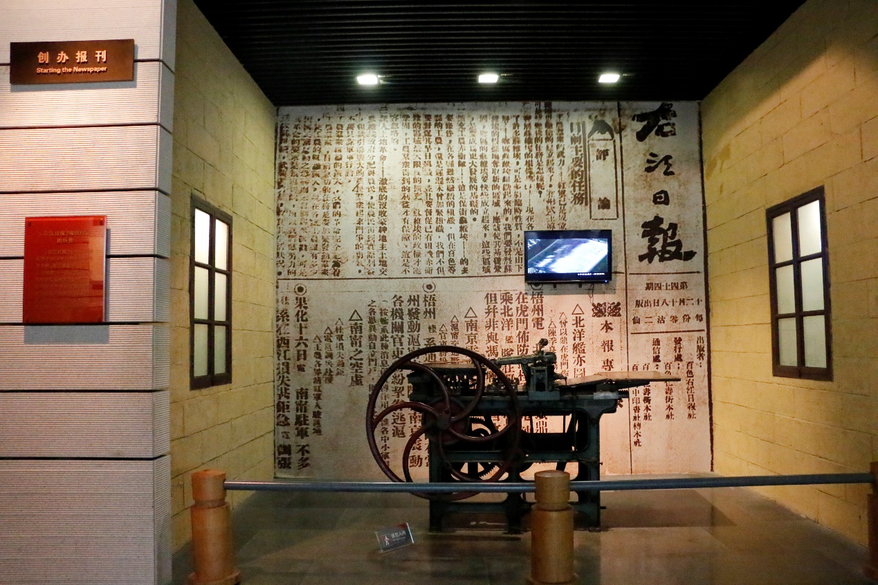 在参观过程中,一台老式手摇油印机引起了同学们的注意。这是1929年红七军政治部曾用过的手摇式铅字印刷机,用于印刷红七军前委机关报《右江日报》,该报也成为了红军创办最早的一张铅印报纸。讲解员介绍到,“红七军为了积极开展社会宣传活动,当时的宣传就是采用画漫画、写标语以及办报纸的方式。《右江日报》是中共广西前委于1929年11月初在百色创办的,并由张云逸题写报名,如今成为了百色市委机关报。”在百色起义中,正是《右江日报》发挥了巨大的舆论宣传作用,激励了大批先进分子投身到革命当中。